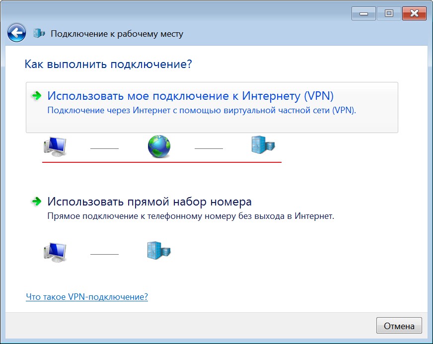 4. Затем выбираем пункт "Использовать мое подключение к Интернету (VPN)":